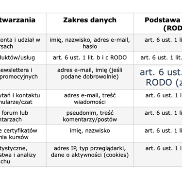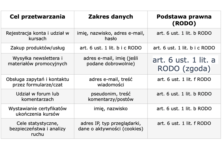 3. Podstawy prawne przetwarzania danych